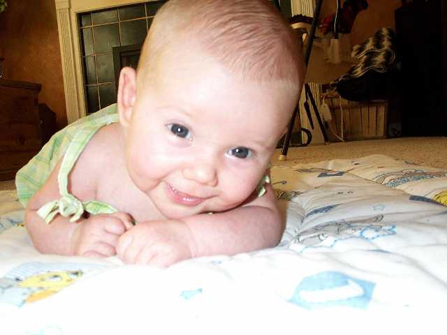 "belly time" almost every day to help her learn how to hold her head