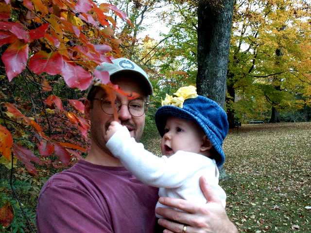 Here, Maddie shows Dad how to distinguish the leaves of this tree from the
